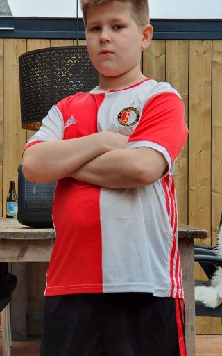 Tom zit op de Springplank in groep 8. Hij heeft op maandag en dinsdag juf Linda en de rest van de week heeft hij juf Floor. Juf Floor ken ik wel, dat is echt een superleuke juf, en Tom is het roerend met me eens. Juf Linda is iets strenger dan Floor. Tom gaat de groetjes aan juf Floor doen, misschien vindt ze het wel leuk om een keertje te komen kijken? Het leukste op school is gym en rekenen. Tom houdt niet zo van Engels, nieuwsbegrip en taal. Later wil Tom graag profvoetballer worden, en als dat niet lukt, dan moet hij nog even nadenken over plan B. Misschien iets doen net als zijn ouders? Zijn vader is stoffeerder en zijn moeder zit in de verzekeringen (dacht hij). Hij zou wel hetzelfde werk als zijn vader willen doen hoor, want zijn vader heeft hele leuke en lieve collega’s. En je ziet wel mooi resultaat van je werk. Toch wil Tom liever profvoetballer worden, maar dat willen eigenlijk alle voetballende kinderen wel. En de kans dat het lukt, is niet zo heel groot. Tom zou willen voetballen bij Feyenoord of Paris Saint Germain. We hebben dus weer een Feyenoorder op de bank zitten aanstaande zaterdag. Tom is voor Feyenoord omdat zijn vader voor Feyenoord is en hij kijkt wel eens een wedstrijd samen met zijn vader. Alle spelers van Feyenoord zijn goed, want anders voetbal je niet in dat team.